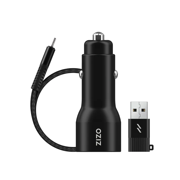 ZIZO PowerVault Bundle 3 en 1 – Cargador de Auto 20W + Cable USB-C a USB-C + Adaptador