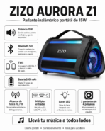 Su batería recargable, diseño portátil y potencia de 15W hacen que el ZIZO Aurora Z1 sea una excelente opción para quienes buscan un parlante práctico, llamativo y fácil de usar.