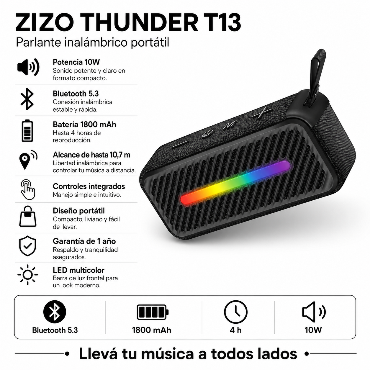 Gracias a su batería recargable, conexión Bluetooth y diseño práctico, el ZIZO Sonic Z4 es una opción completa para quienes buscan un parlante potente, divertido y fácil de transportar.